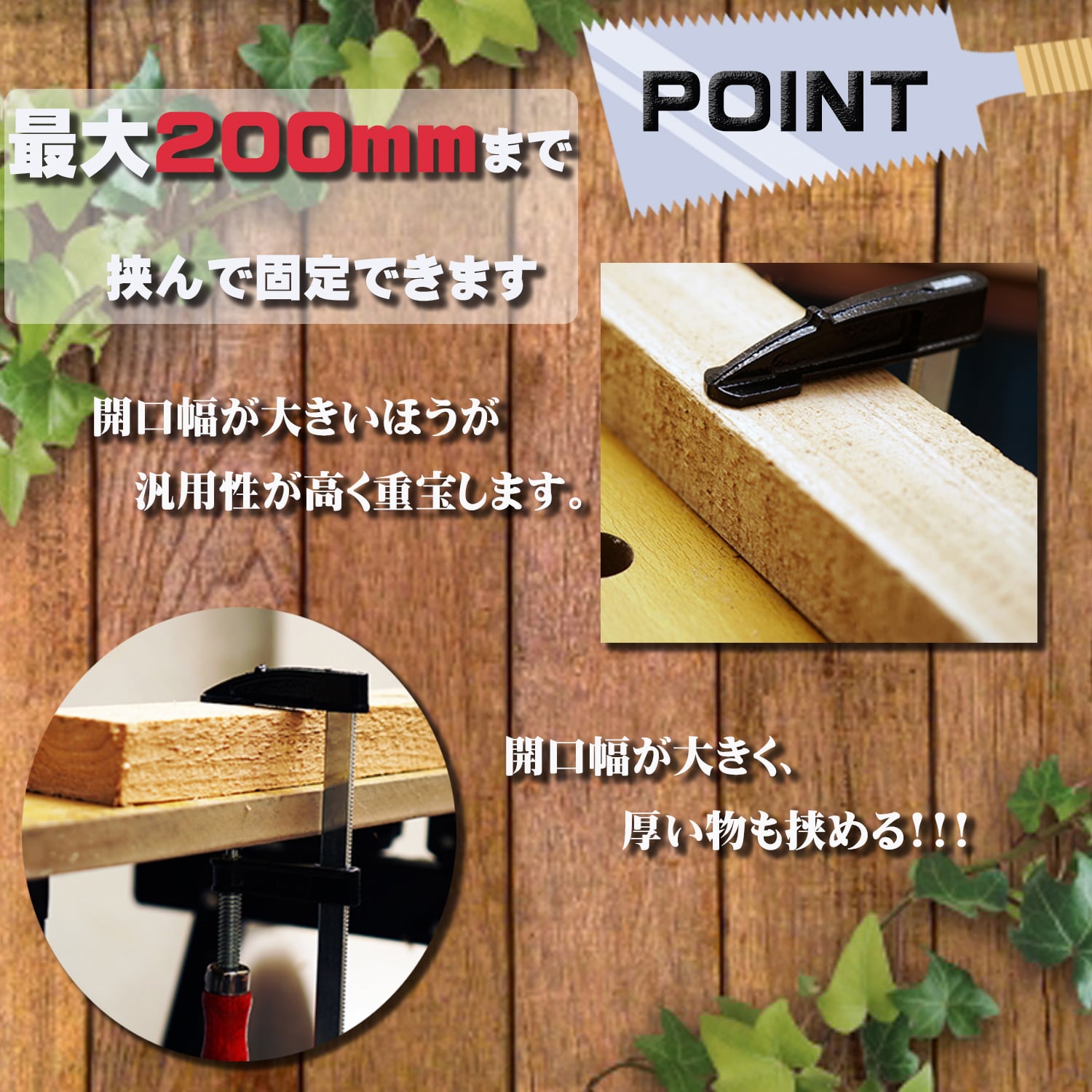 多用途で使用 f型タイプ スチール クランプ 50×200mm [サイズ補足]クリップ長さ:80mm スクリュー直径:約20mm ハンドル約9cm 重量:3.2kg